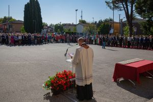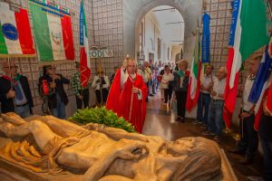 Mentre il Rettore del Tempio Nazionale dell’Internato Ignoto, don Fabio Artusi, dopo il suo intervento ha benedetto 62 marmette che verranno collocate nel pronao del Tempio in memoria di Internati di varie città italiane.